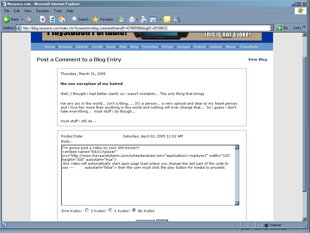 I will be allowing some of my webspace to be used for hosting files for yourself.. As soon as i can find out how to add a upload utility that i can add to my page that i can have control over so people are not uploading 50 meg files until my webspace and bandwidth is all used up... Boyee!